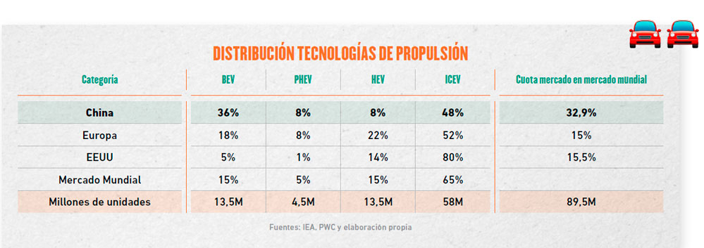 El liderazgo de China en el vehículo eléctrico es claro, pues concentra más del 60% de las ventas mundiales de vehículos BEV, con una cuota del 50% en el mercado local, frente a una creciente penetración del 18% en Europa; y del 6% y reduciéndose en EE. UU. En España, el acumulado a noviembre 2025 es del 8,1%. Con BYD como marca líder destronando a Tesla, el tradicional líder del segmento.
